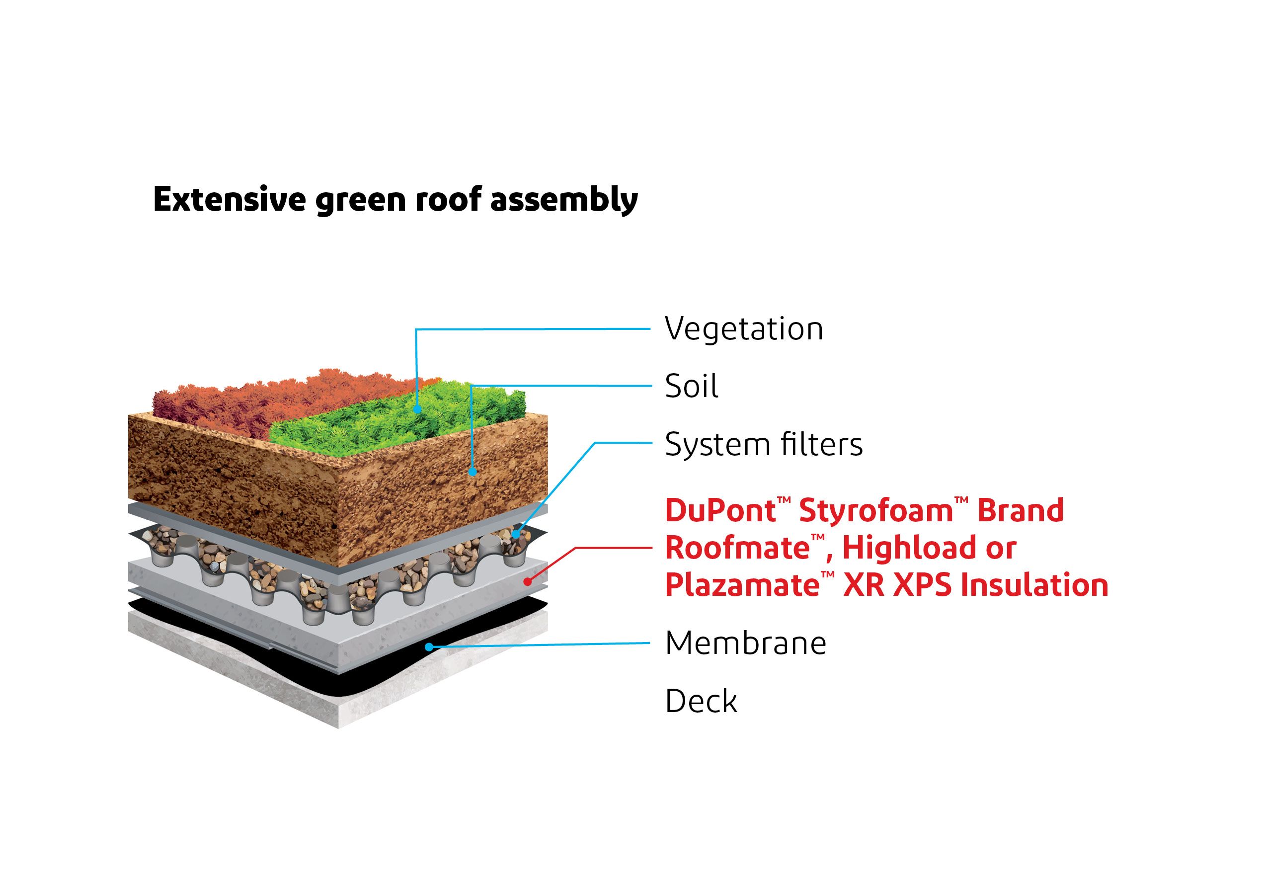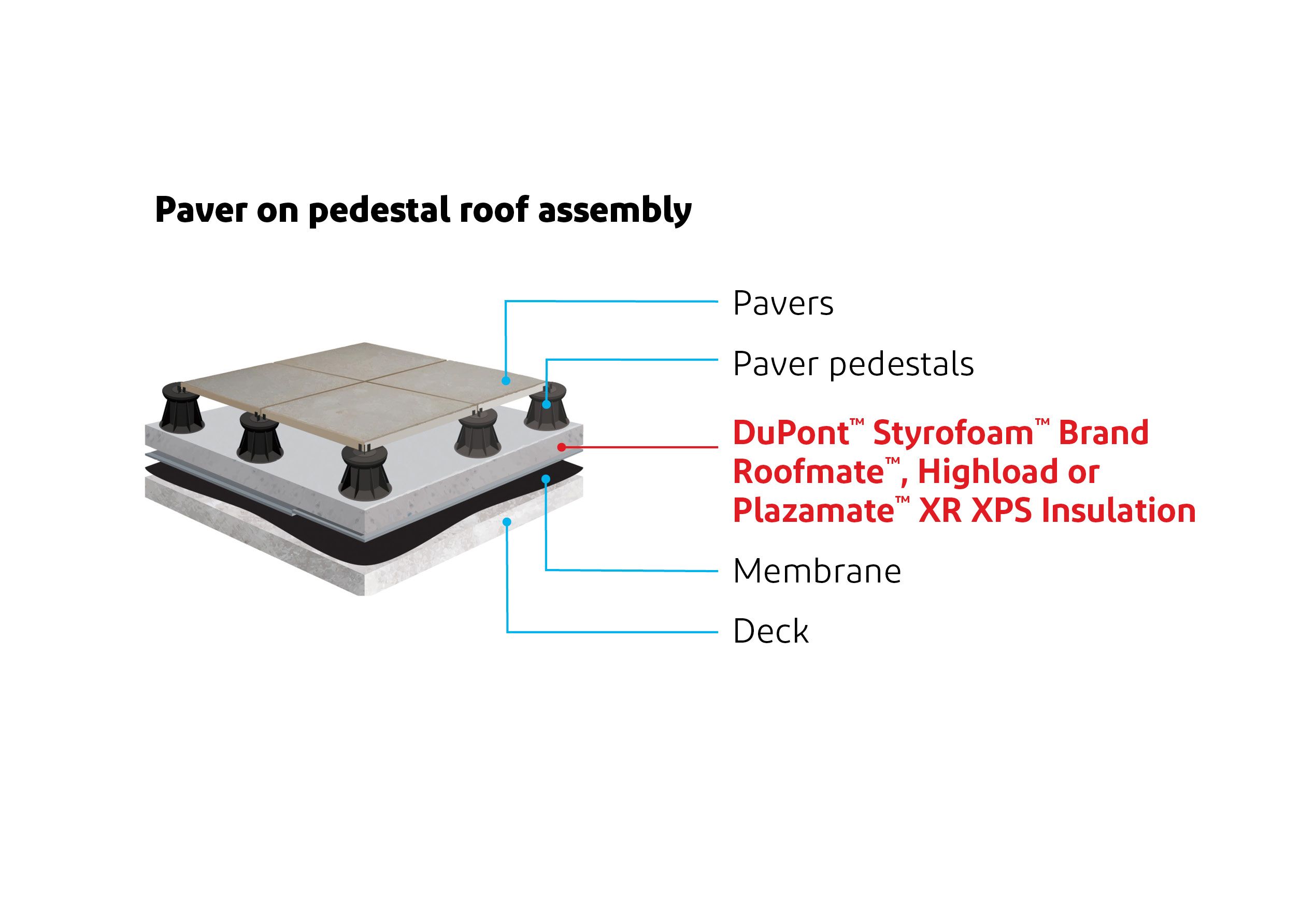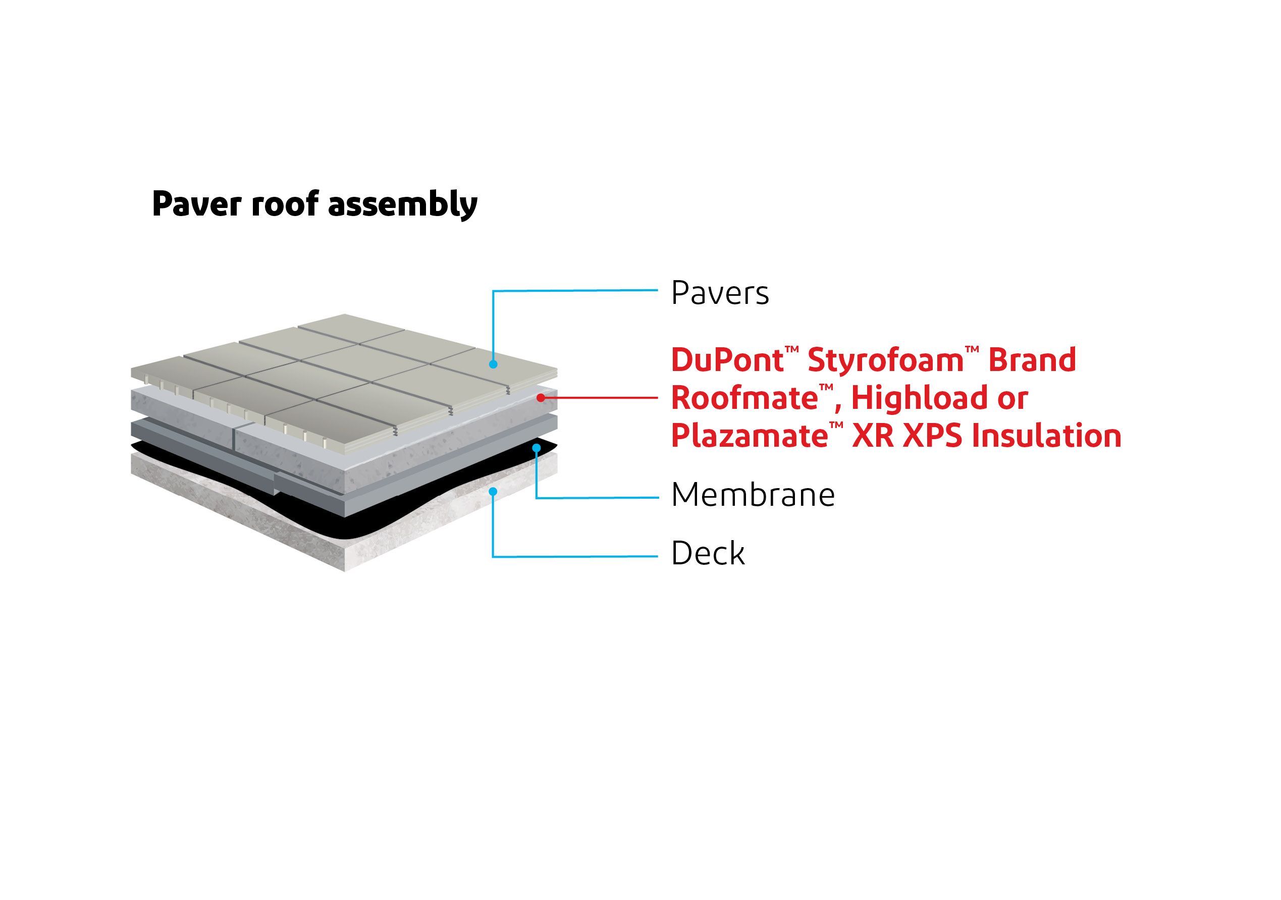 Invented in the late 1960’s, a protected membrane roof system uses DuPont™ Styrofoam™ Brand XPS Insulation to protect the membrane, helping improve the performance and longevity of the entire roof system.