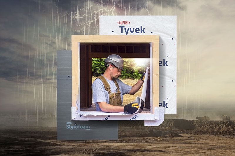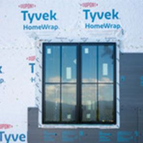 DuPont™ Tyvek® Wrap Products with DuPont Self-Adhered Flashing Products and DuPont Continuous Insulation |