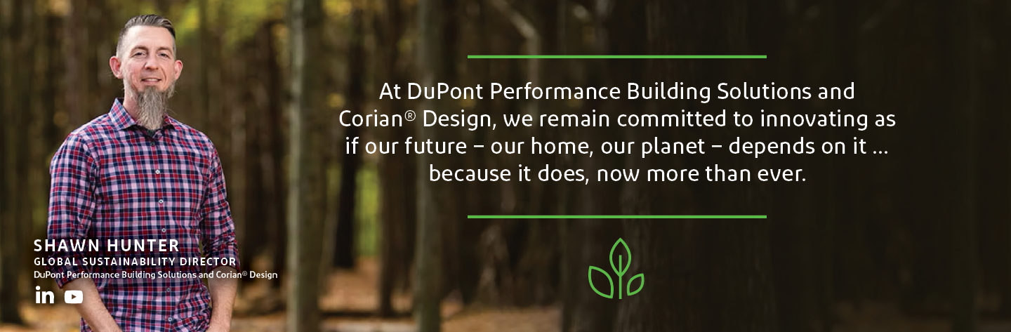 There’s no place like home, but our sanctuary is facing irreparable damage. With buildings being responsible for nearly 40% of global GHG emission, and the construction industry contributing to roughly one-third of all waste- we have an opportunity to bend the curve. DuPont PBS & Corian® Design has committed to reducing our GHG emissions by 75% by 2030 from a 2019 baseline level. By the end of 2022, we saw a 41% reduction in our GHG emissions, great progress, but we know there is more work to do. To prevent global temperatures from rising beyond 1.5°C, we must reduce global emissions by half by 2030. If we act now and make a conscious effort toward decarbonization, we can realize our shared vision of a home with a safe, sustainable environment – now and for generations to come.