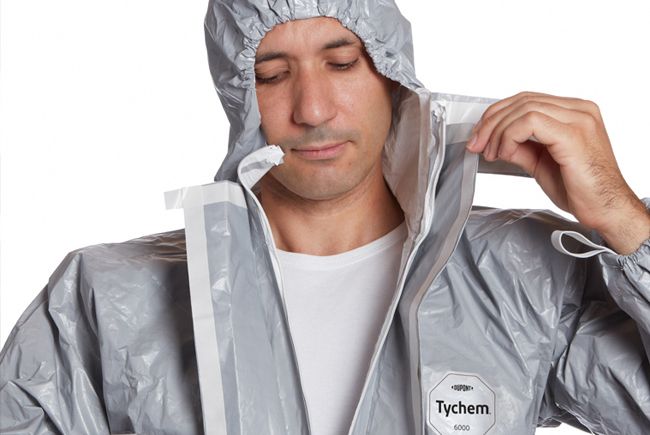Compared to the previously used, full-body chemical coveralls, Tychem® 6000 F makes the job much easier, whilst offering the same high level of protection against bacteria and viruses. Thanks to Tychem® 6000 F, ambulance crew can protect themselves with a transparent respirator fit hood which is fed fresh air via a filter/ventilator unit worn outside the suit and attached to the belt. Slight overpressure occurs underneath the hood to minimize the risk of pathogens penetrating, plus the battery powering this breathing apparatus has a run-time of eight hours.