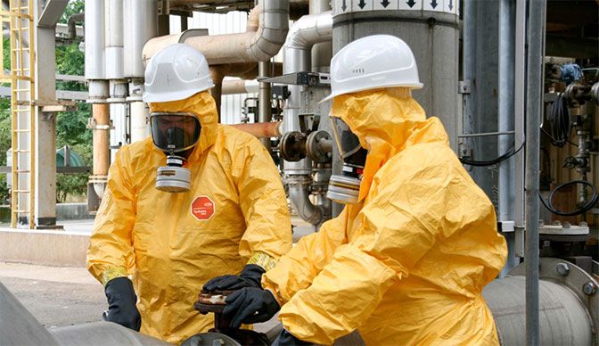 Tychem® offers protection from liquid chemicals and Tyvek® from dusts