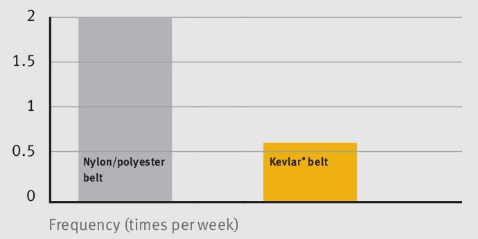 Maintenance data contrasting the old polyester/nylon conveyor belt vs. belt made with Kevlar®