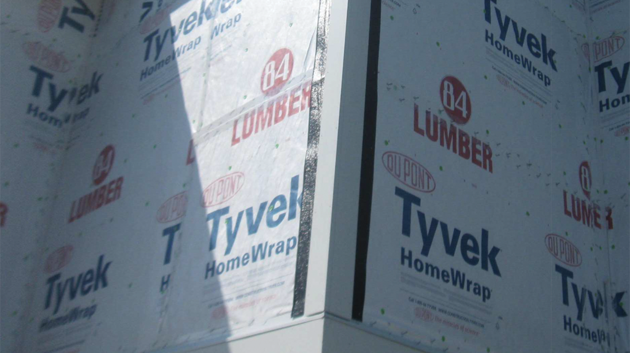 DuPont™ Tyvek® Tape was used on all seams because it provides a continuous barrier against air and water infiltration, features a specially engineered adhesive to create the best adhesion to the DuPont™ Tyvek® HomeWrap®.