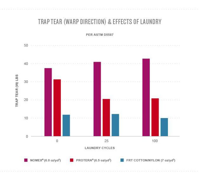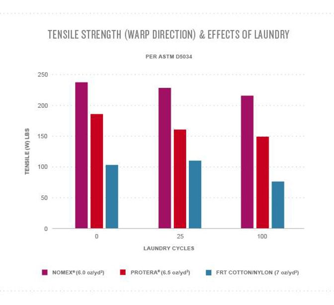 Protective apparel made of Nomex® is so durable that industrial launderers estimate that it may last for five years and be washed and worn at least 125 times without compromising its protection, shape and professional appearance. In contrast, garments of flame-retardant-treated (FRT) cotton can be washed and worn an average of only 25–40 times.