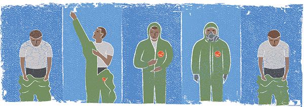 This exercise is also designed as an air consumption drill. Participants work though the scenario in full Level A chemical protective clothing and self-contained breathing apparatus (SCBA) while performing physical and mental exercises.